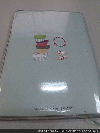 去年在日本買的是小本的DATE BOOK,封面是可愛的Jackie穿長裙,封底則是他身上的飾品,外觀較為簡單,就只是單純套上透明保護套而已。