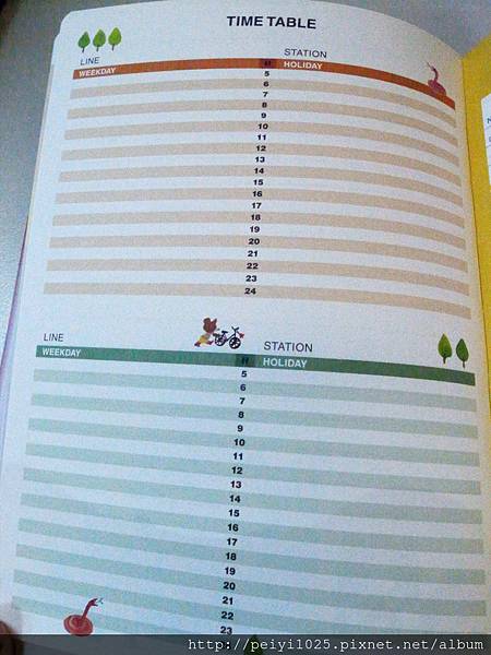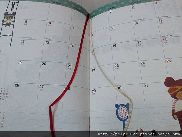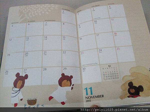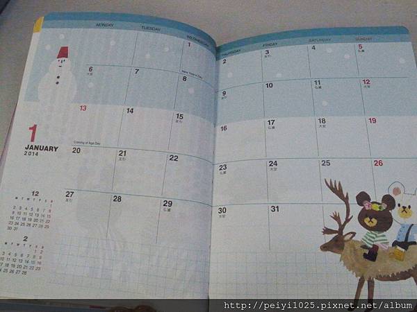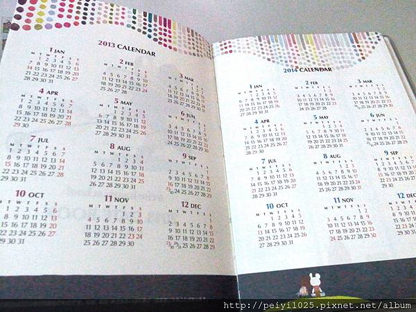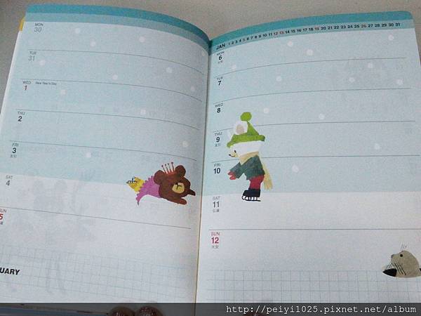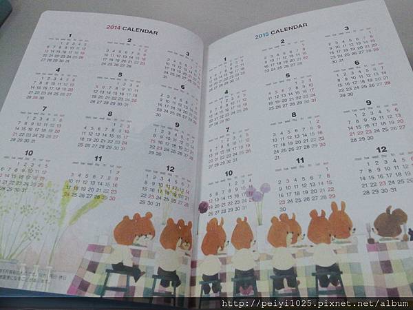 (下)2014 這一本的筆記攔則是以格子的形式取代底線,統一出現在下方,圖樣則不用多說,還是一樣可愛!!!!!!