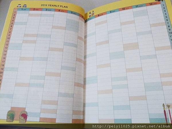 (下)2014 這一本將年度計畫濃縮在一頁,格子雖然小但是其實我不太用到這個表格,所以算是相當符合需求,一頁就夠了...