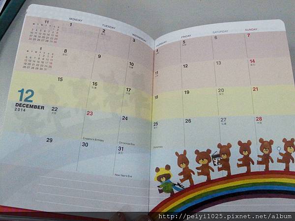(下)2014 放上比較花俏的圖片,才剛打開手帳全體小熊都出現了!!!!!!!
