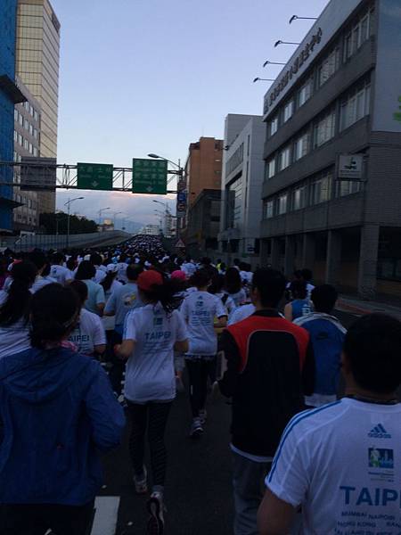 因為參賽人數相當多,若中途停下來很容易造成後面跑者的困擾,假如真的要拍照的話要慢慢移動到路邊會比較安全一點,所以中間都沒有照片,但也沒有什麼好拍的,就是高架橋…整段都是高架橋。