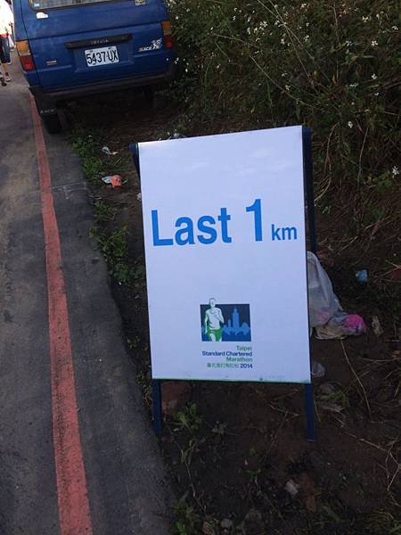從新生公園附近的十號水門繞進大佳河濱公園,看到這張倒數牌子,原本的疲勞感好像都不存在似的,馬上打起精神邁向終點。