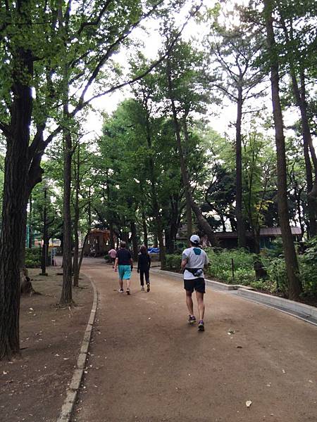 公園內大樹很多,晨跑時沒有日曬的困擾,步道也很寬廣,可以輕鬆避開散步與遛狗的人,若是累了或渴了,日本公園內基本上都會有水龍頭跟生飲機。